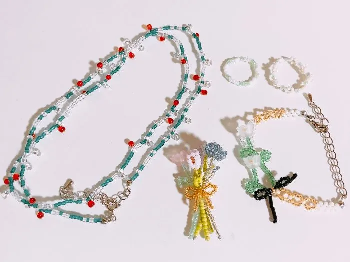 最近は生活の傍らで、ビーズアクセづくりをしています