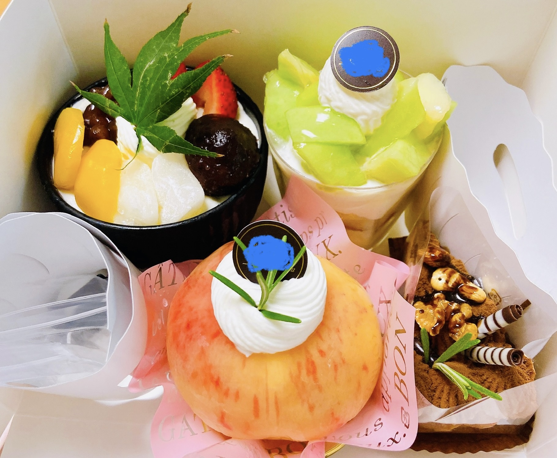 代わりにケーキ買ってきました。桃丸ごとスイーツ気になってたんだー! さっそく食べたら果肉が瑞々しくてめちゃくちゃ食べ応えがあり、中のカスタードも美味しくて…幸福度ましましでした🙏✨ お腹もパンパン!